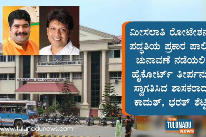 ಮೀಸಲಾತಿ ರೋಟೇಶನ್ ಪದ್ಧತಿಯ ಪ್ರಕಾರ ಪಾಲಿಕೆ ಚುನಾವಣೆ ನಡೆಯಲಿ ಹೈಕೋರ್ಟ್ ತೀರ್ಪನ್ನು ಸ್ವಾಗತಿಸಿದ ಶಾಸಕರಾದ ಕಾಮತ್, ಭರತ್ ಶೆಟ್ಟಿ!